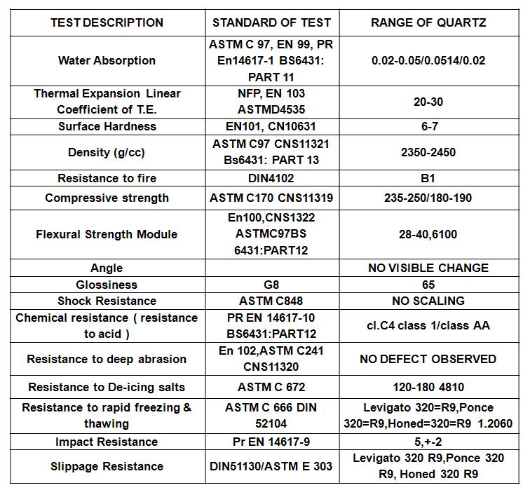 TECHNICAL SPECIFICATIONS OF QUARTZ SURFACE